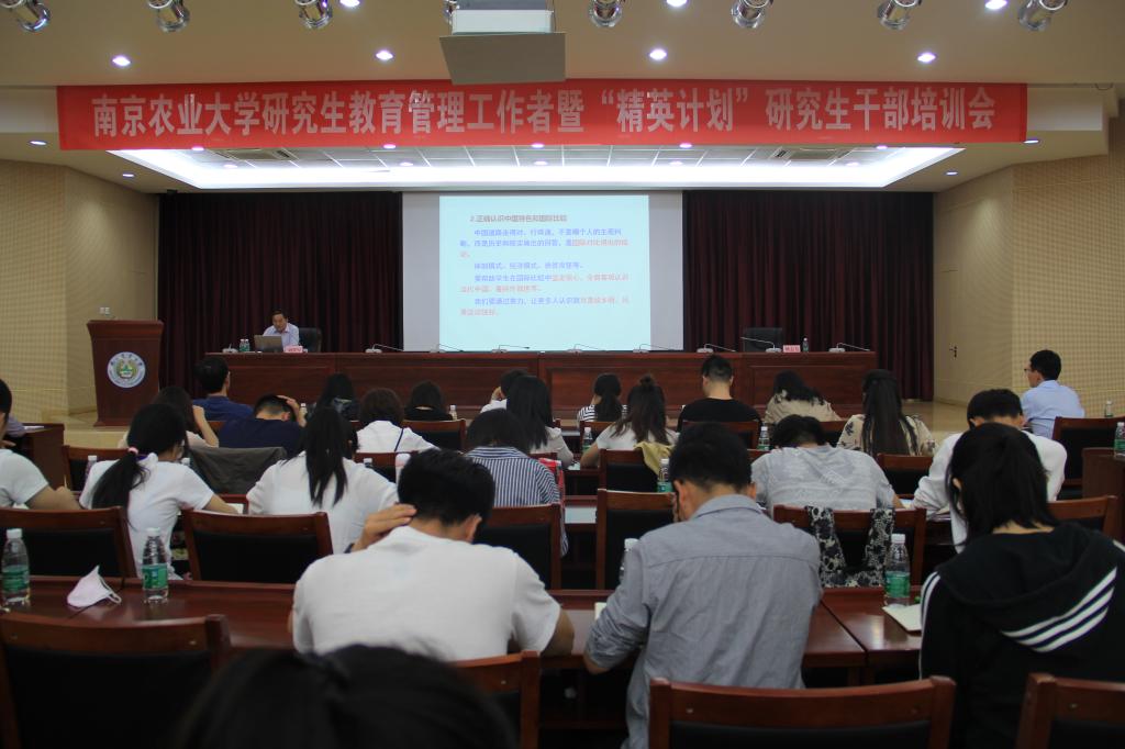 为进一步学习贯彻全国高校思想政治工作会议精神,加强研究生辅导员和研究生干部队伍建设,5月16日下午,我校在金陵研究院三楼报告厅举办了南京农业大学研究生教育管理工作者暨“精英计划”研究生干部培训大会。校党委副书记刘营军教授在会上做了“学习习近平总书记在全国高校思想政治工作会议上讲话精神 争做优秀学生干部”的主题报告。会议由研究生工作部副部长姚志友主持,全体专兼职研究生辅导员、研究生工作部人员和100余名“精英计划”研究生干部培训班学员参加了会议。