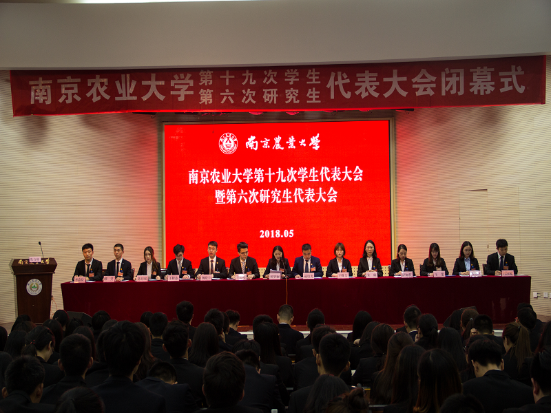 5月26日下午17点,南京农业大学第十九次学生代表大会暨第六次研究生代表大会闭幕式在大学生活动中心报告厅举行,我校116名研究生代表参加会议。